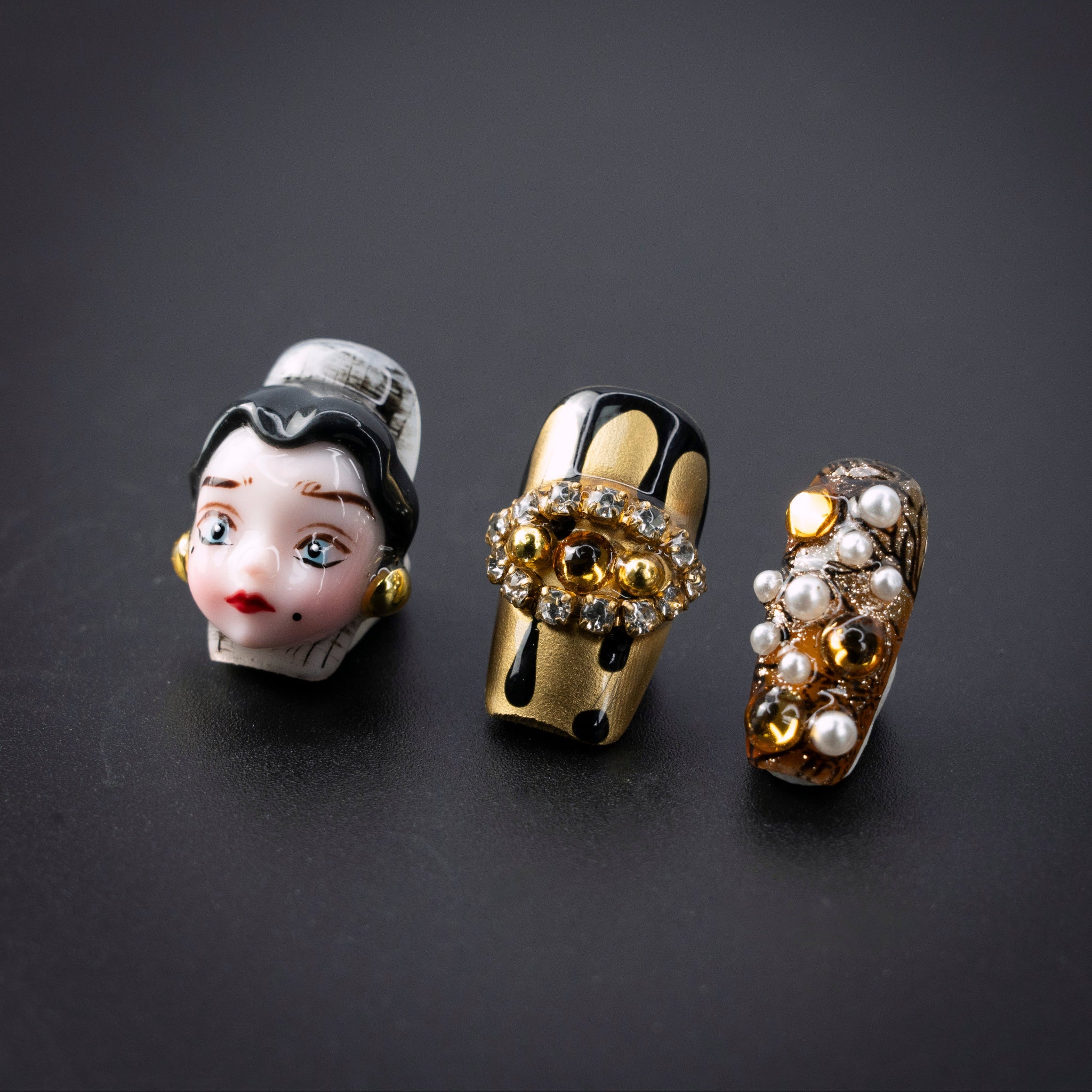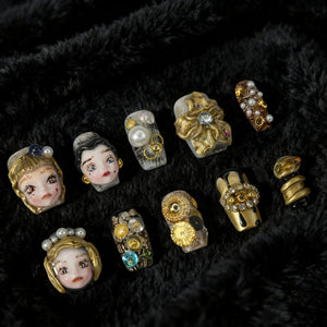 Surrounded by walls of antique dolls, our designer fell into a reverie. She longed to translate their timeless charm—the faded memories, the gilded details, their silent stories—onto the delicate canvas of the nail.