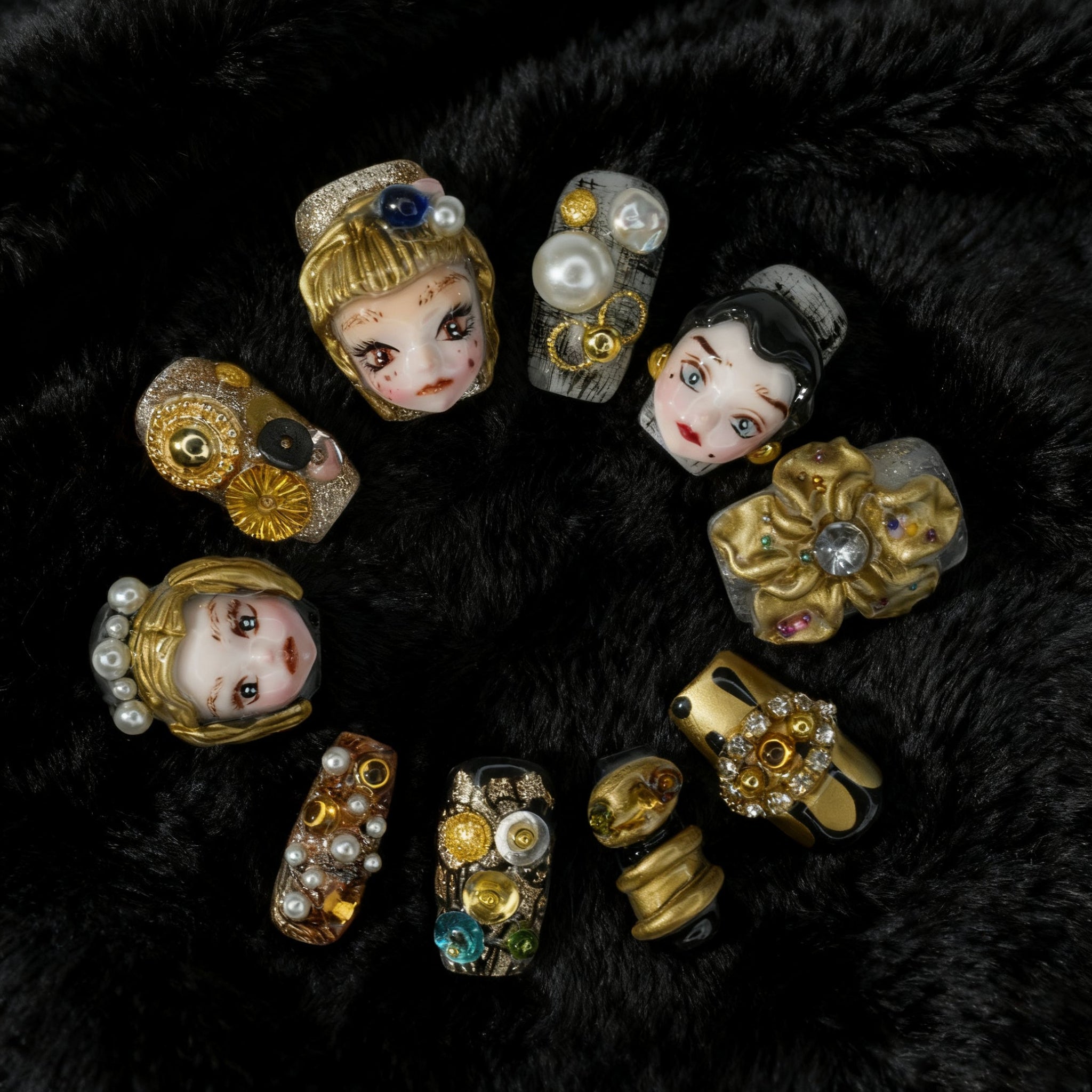· Sculpted Narratives: Each piece is carefully hand-sculpted and adorned with 3D vintage dolls, intricate gilded patterns, and cameo-style jewels, capturing the unique texture of antique dolls.