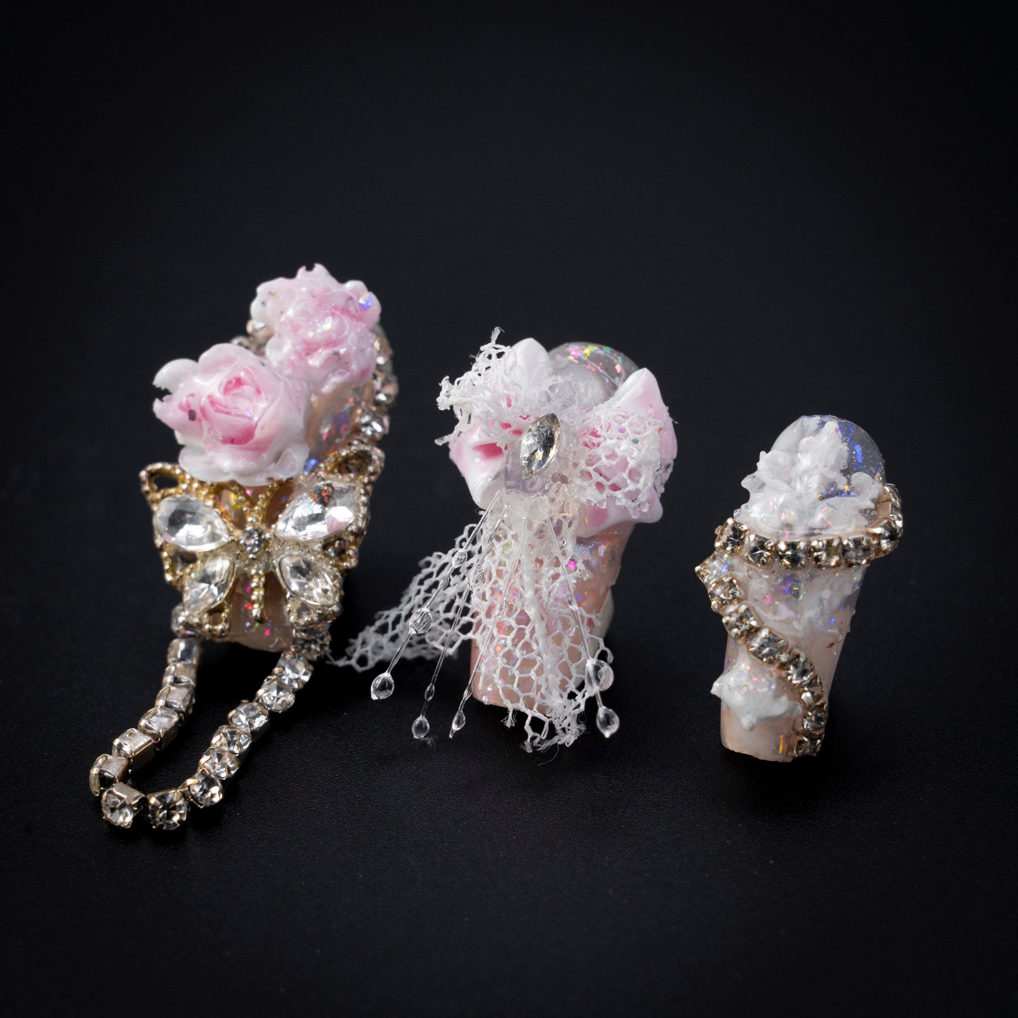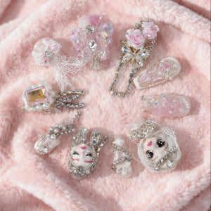 Inspired by the delicate lace and timeless elegance of Victorian wedding gowns, designer has captured the very essence of romance—soft lace, shimmering crystals, and the gentle glow of pearls—all condensed onto the tip of your nail.