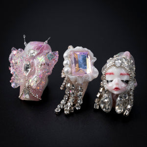 · Sculpted Romance: Each piece is meticulously hand-finished with 3D lace blooms, delicate pearls, and crystal-embellished motifs, echoing the luxurious details of a couture wedding gown.