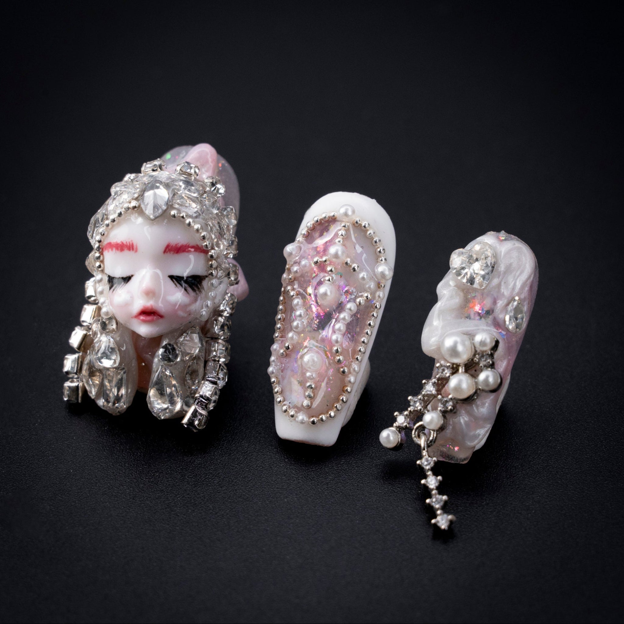 More than press-ons—they're fragments of a wedding gown for your fingertips.