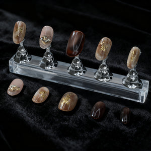 · Caramel Ombre & Gold Leaf Inlay: A warm, layered brown base is adorned with hand-placed gold foil fragments—creating a soft, elevated texture perfect for professional settings.