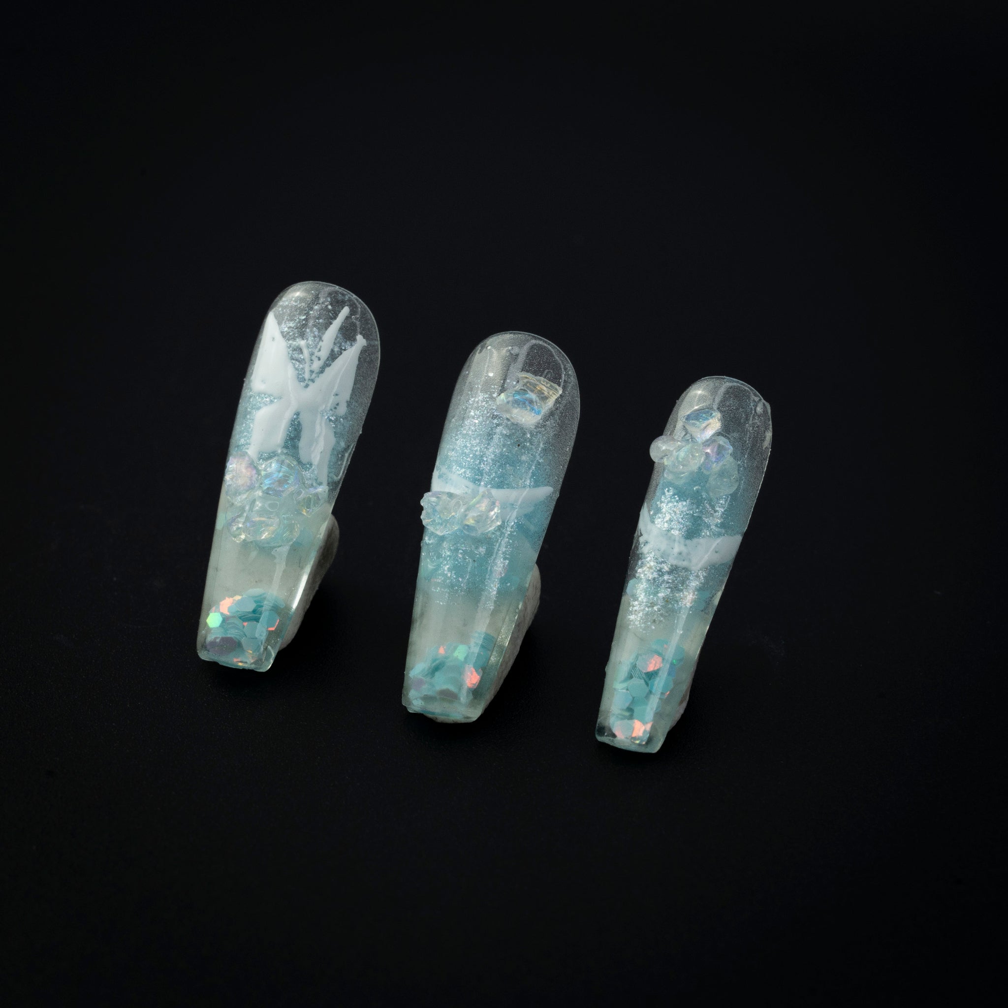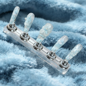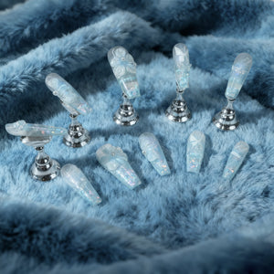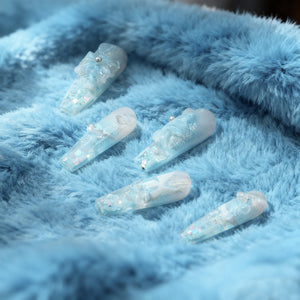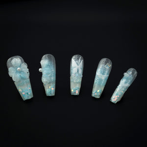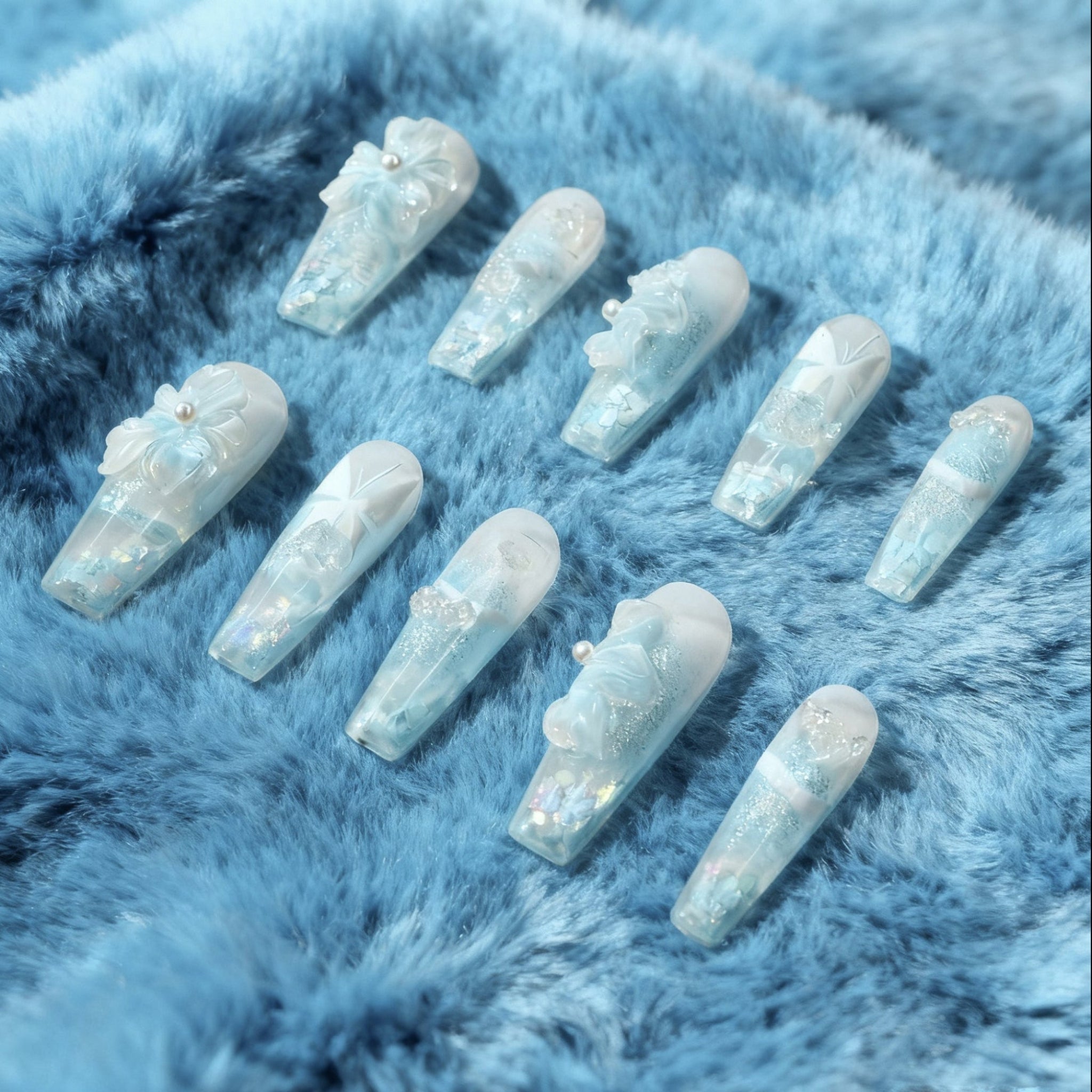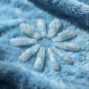 "Iced Illusion" Pastel Blue 3D Floral Butterfly Press-On Nails - Coffin Nails