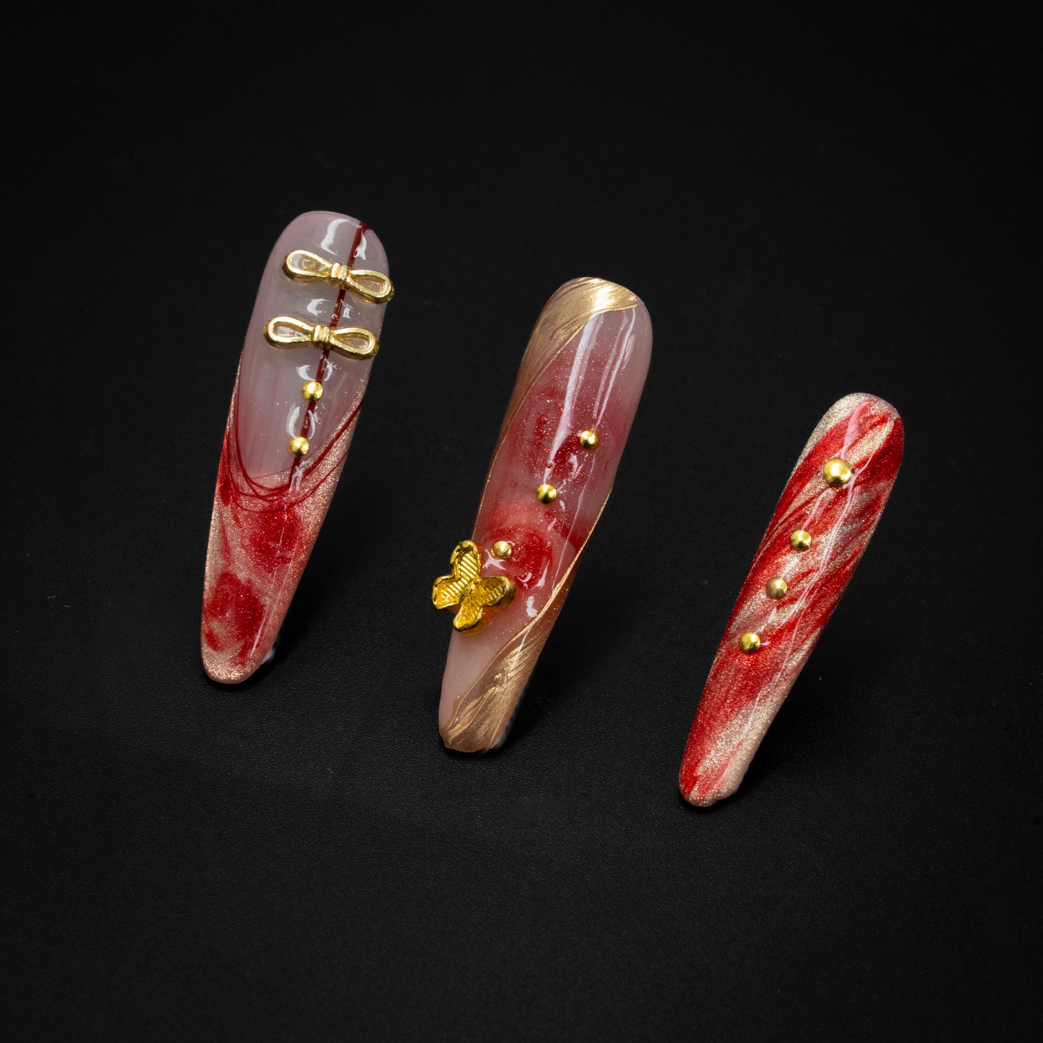 · Be the Center of Graceful Attention: Whether raising a glass at your wedding or conversing at a gala, your red-and-gold nails will frame every gesture with luxury—making you the quiet standout in any refined setting.