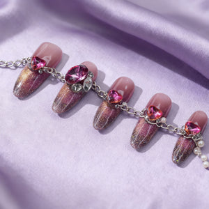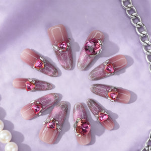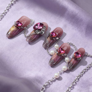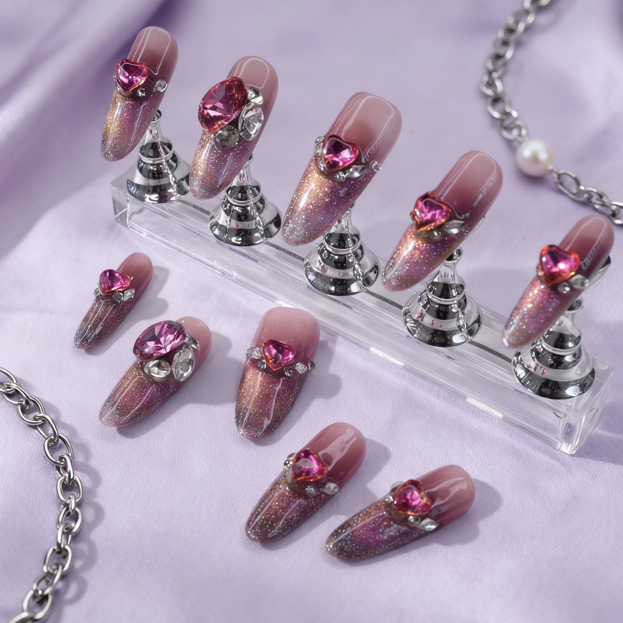 · Crafted with Romance: Featuring a luxurious glitter gradient and delicate heart-shaped gems, all achieved with salon-quality craftsmanship.