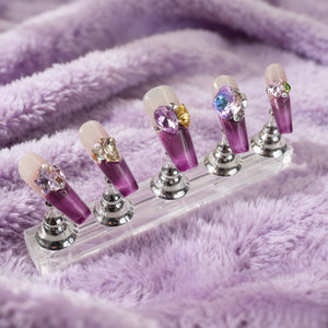 "Lavender Sonata“ Luxury Glitter Heart Gem Press-On Nails - Almond Nails