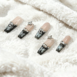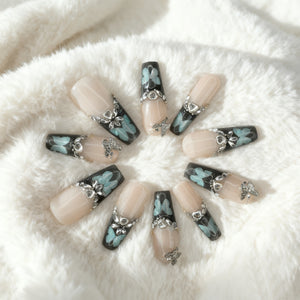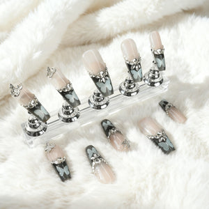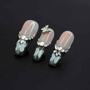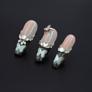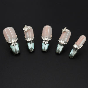 · Nude Ombre & 3D Crystal Butterflies: A soft, skin-like gradient elevates the sculpted crystal butterflies, adding dimension and sophistication far beyond basic press-ons.