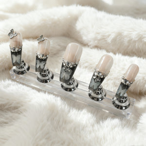 Press-on nails are pre-designed nail accessories that you can easily apply and remove anytime, anywhere. Most are reusable. Unlike traditional manicures that require time-consuming salon visits, press-on nails are more convenient and cause less damage to your natural nails.
